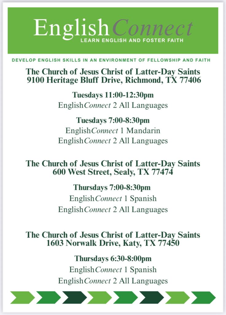 - All Languages -Thursdays 6:30-8:00pm, 1603 Norwalk, Dr., Katy (ongoing)