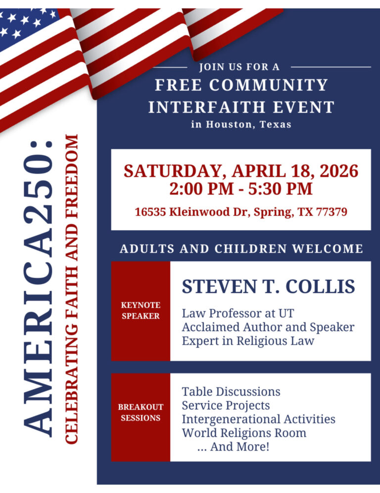 Join us for a special community seminar in honor of America250, celebrating religious freedom, the rich diversity of faith traditions, and unity across communities.